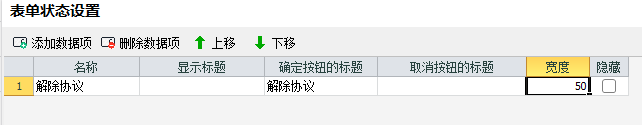可以通过权限来控制,在数据策略中设置表达式,当状态等于解除,则隐藏解除协议这个状态按钮